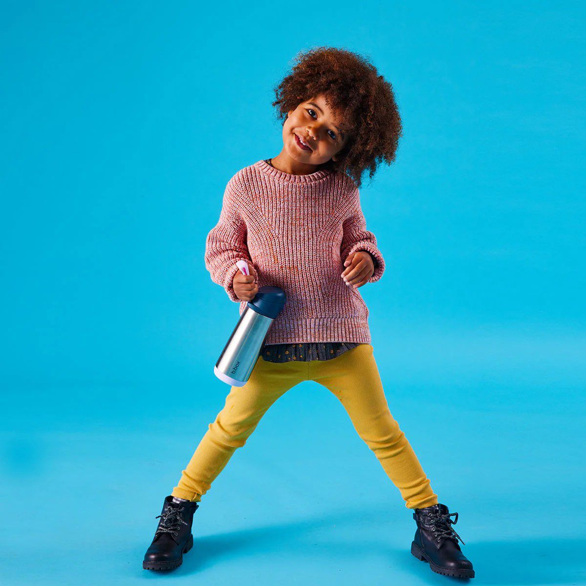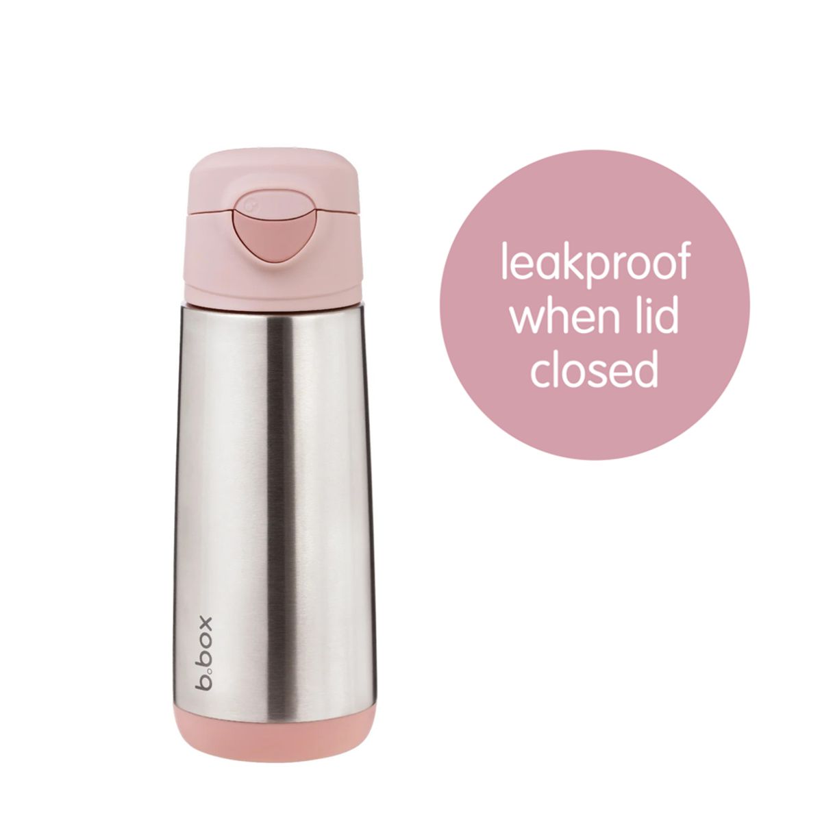 Our insulated sport spout bottle is leak-proof when lid is closed, rest assured no more soggy bags or library books! Simple press button to open. Soft silicone spout stays covered, clean and hygienic. Silicone strap handle lets kids easily carry their bottle and pull out of school and sports bags. And the sleek design appeals to older kids too. Wide opening for easy fill (and refill) with liquid and ice cubes. 500ml/16.9oz capacity. Dishwasher safe, top rack only.