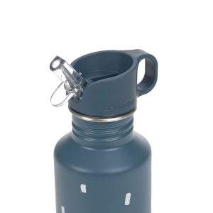 The BPA-free bottle has a wide top for easy refilling and comes with two different drinking caps. The convenient screw cap with stainless steel clip makes it easy to carry or attach to a backpack. The sports cap makes it easier for youngsters to drink unaided.
