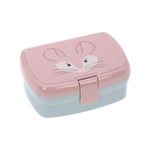 The two-colored lunchbox has a removable tray providing order and enabling different snacks to be stored. It is very robust and children can easily open and close it.