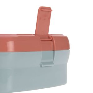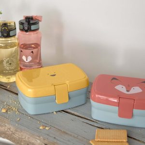 The two-colored lunchbox has a removable tray providing order and enabling different snacks to be stored. It is very robust and children can easily open and close it.