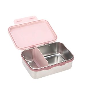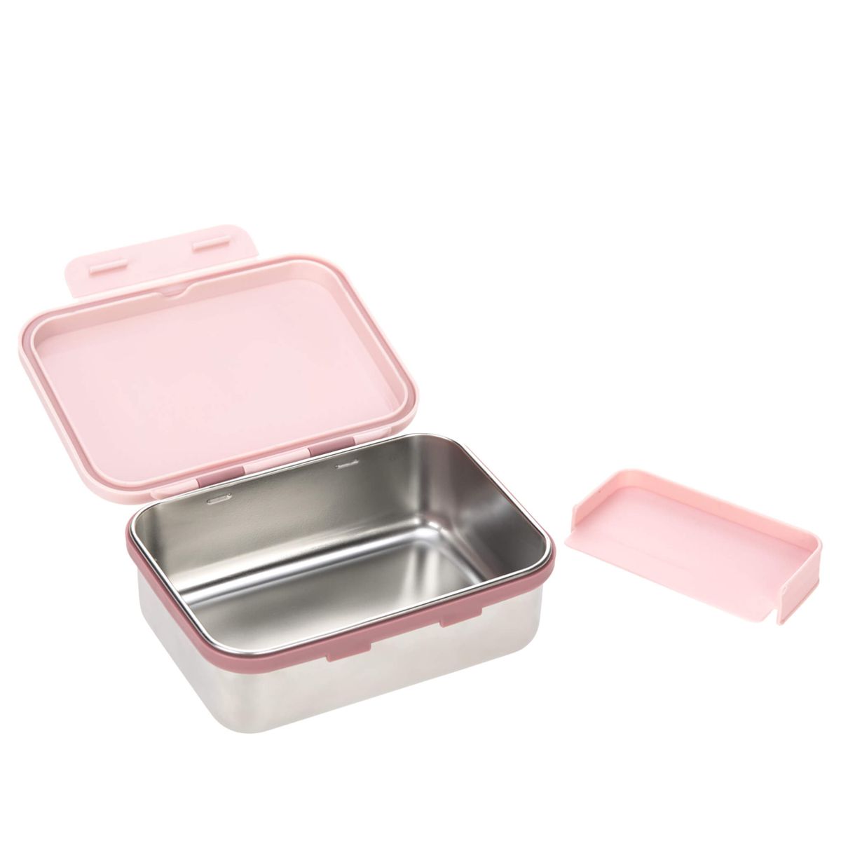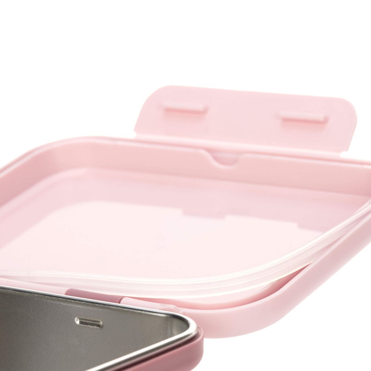 The robust and BPA free lunchbox is made of odorless and tasteless material: The box is made of 100% stainless steel and the lid is 100% polypropylene. The silicone ring integrated in the lid closes the lunchbox firmly and snacks stay fresh and delicious.